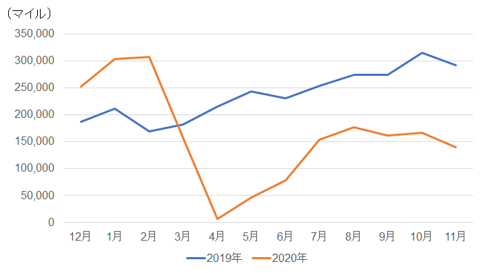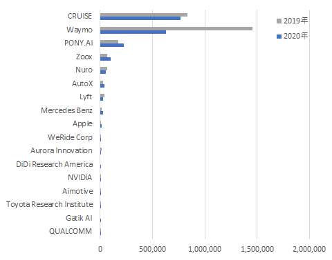 2020年は2019年に比べて自動運転の走行距離は大きく減少