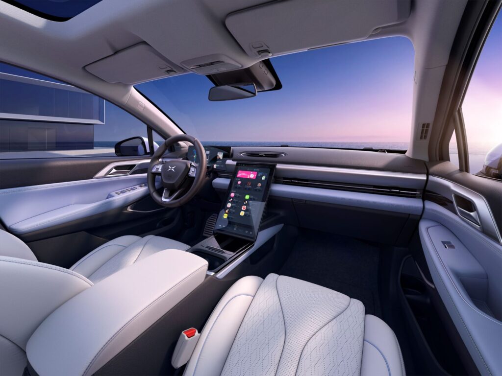 P7においては、横長のタッチパネルがハンドルの前に配置されていたが、今回のP5においては、前方座席の真ん中に15.6インチの大型画面タッチパネルを配置。そして、スマートコクピットのOSとなる、XmartOS3.0プラットフォームは、フルシナリオの全音声インタラクションを実現する。